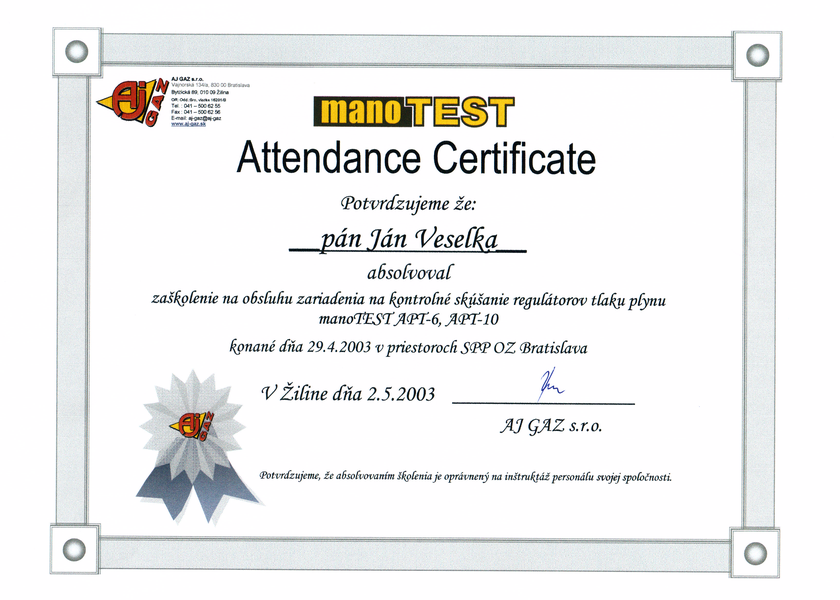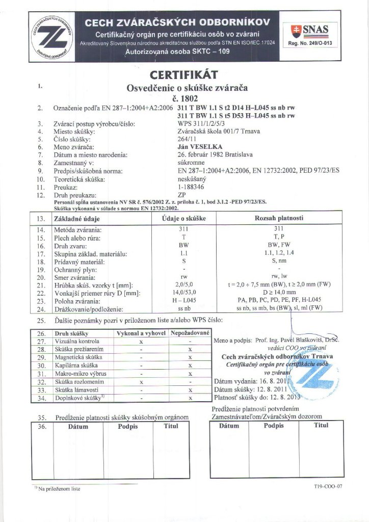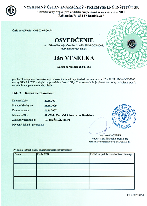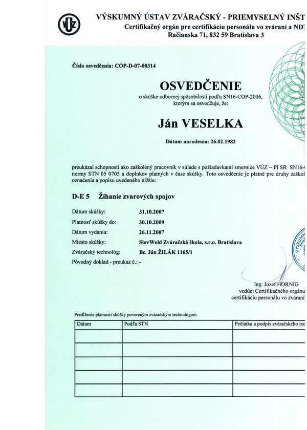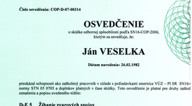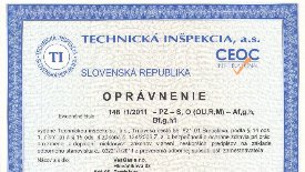 Oprávnenie "Odborný pracovník vyhradených technických zariadení podľa paragrafu 18 vyhlášky č. 718/2002 Z.z."