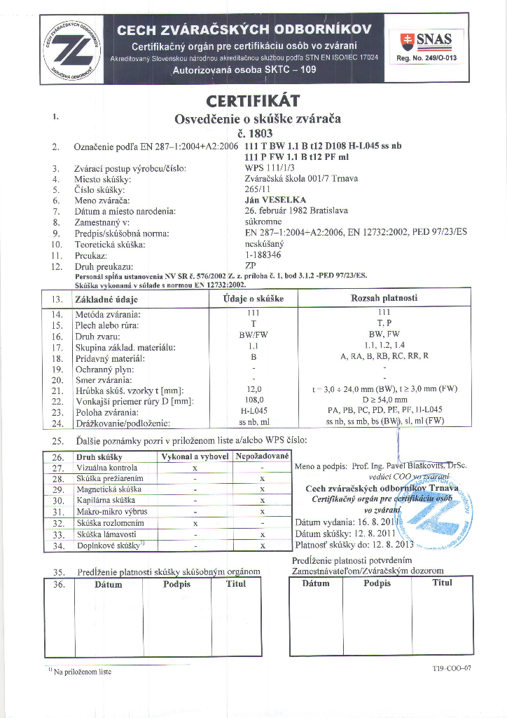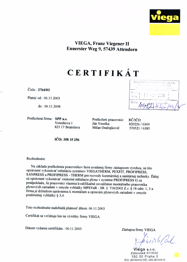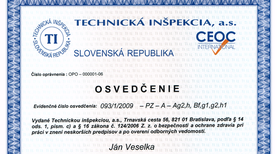 Oprávnenie "Odborný pracovník vyhradených technických zariadení podľa paragrafu 18 vyhlášky č. 718/2002 Z.z."